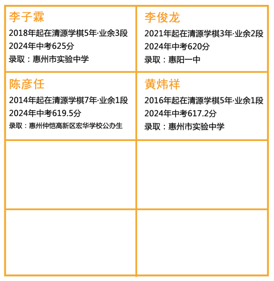 隨著2024年秋季學(xué)棋的開始,眾多清源優(yōu)秀學(xué)子被各大名校錄取的喜報也頻頻刷屏,清源學(xué)員名人堂再添新星: